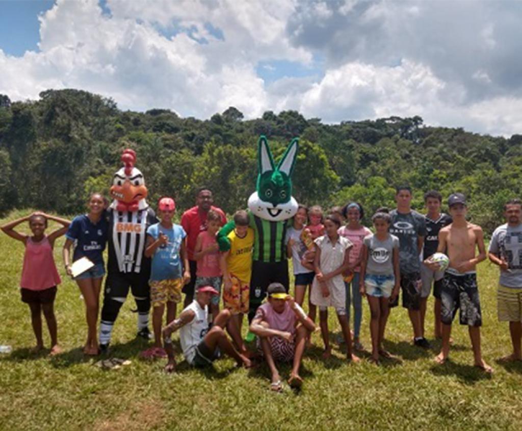 Os mascotes do Atlético, América e Cruzeiro fizeram a alegria de crianças e adolescentes na região do Parque da Cachoeira, em Brumadinho, nesta terça-feira (5/2). O Galo Doido, o Raposão e o Coelhão garantiram uma manhã de descontração, com brincadeiras, roda de conversas, distribuição de brindes e muitas fotos tiradas pela comunidade.