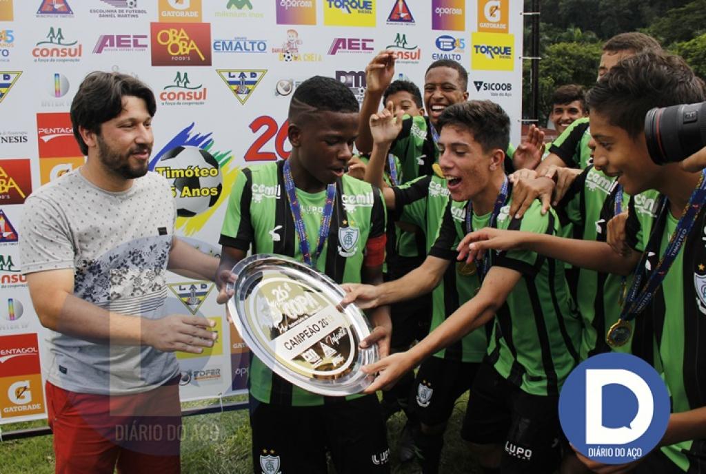 A 26ª edição da tradicional Copa Timóteo de Futebol de Base chegou ao fim na manhã de quarta-feira (1), no campo do Acesita, no bairro Timirim, com as finais das categorias Sub-14 e Sub-12. O campeão do Sub-14 foi o América, que bateu o Atlético por 3 a 1. Quem levou o título do Sub-12 foi o Caxias-ES, que venceu o CAF por 2 a 0.América vence Atlético de virada