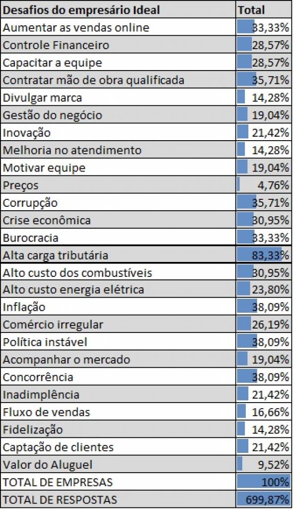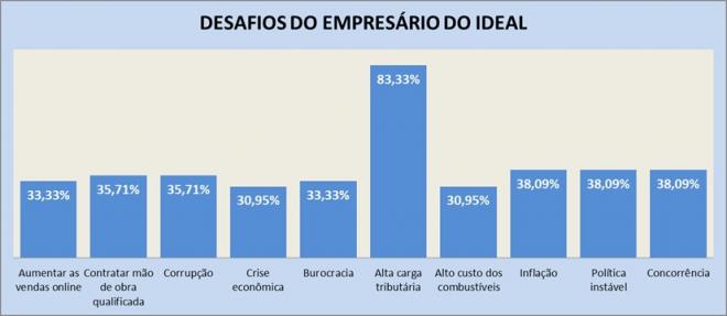 O principal desafio enfrentado pelo empresário no Ideal, indicado na pesquisa, foi a alta carga tributária