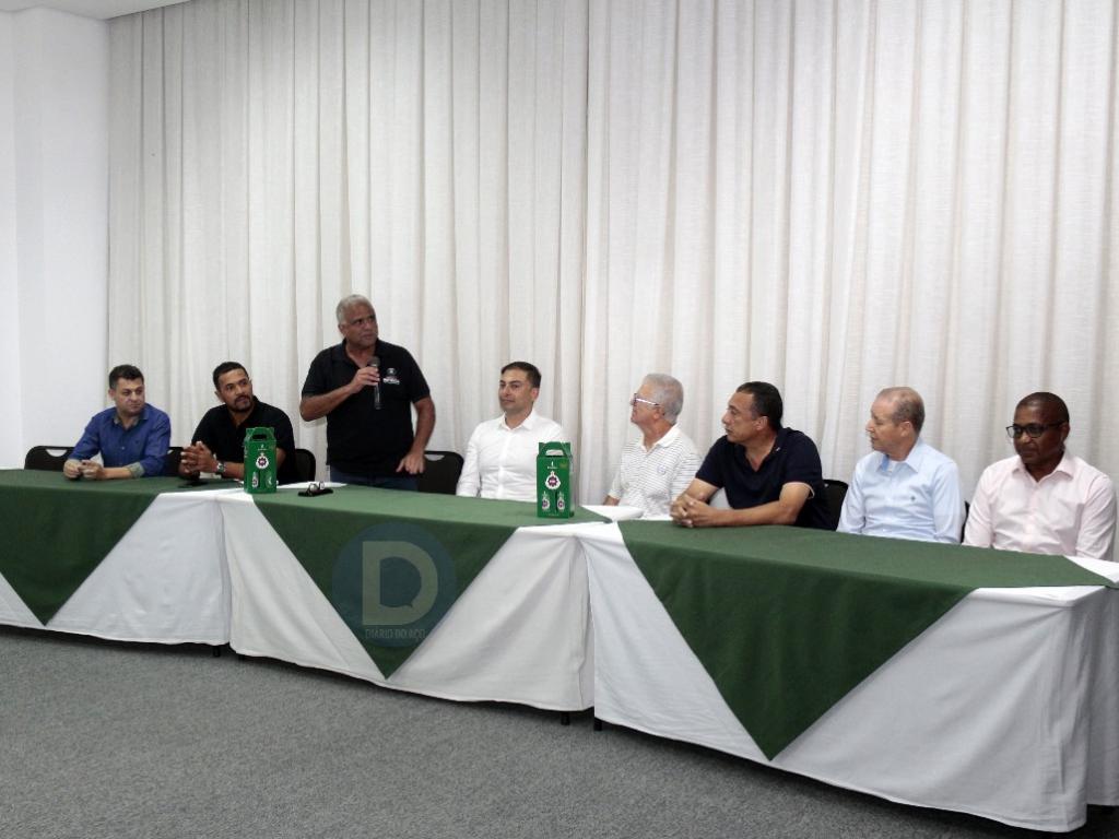 O prefeito Nardyello Rocha (C) e demais convidados compuseram a mesa que deu ?boas vindas? ao elenco do Tigre em 2020