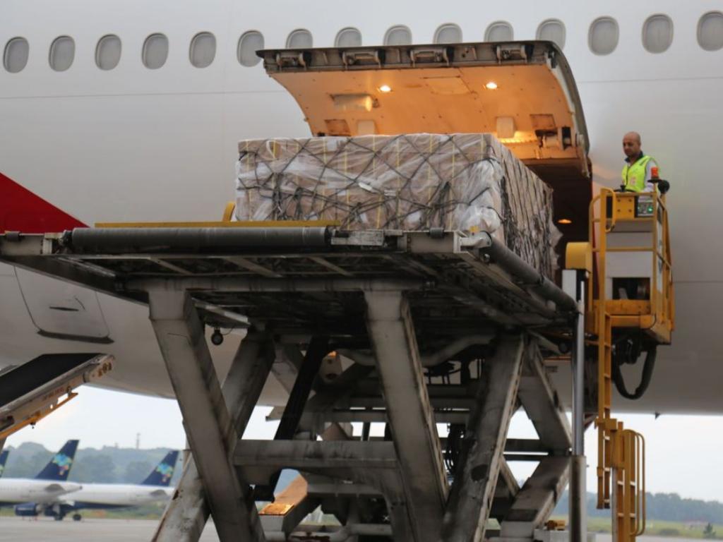 Os insumos, que serão doados ao Ministério da Saúde, fazem parte da segunda remessa de produtos importados pela mineradora Vale, destinados ao combate da pandemia de coronavírus. O voo EK0261 partiu na madrugada de quarta-feira (8) do Aeroporto Internacional de Guangzhou Baiyun, na província chinesa de Guangdong, e chegou às 17h30 de quinta-feira (9) a Guarulhos.