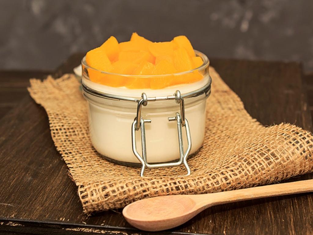 Dica: Você pode decorar as tacinhas com fatias de pêssego natural ou nozes trituradas, e para dar um toque de frescor, finalize a decoração com uma ou duas folhas de hortelã.