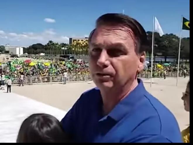 Como das outras vezes alguns militantes carregavam faixas e cartazes pedindo intervenção militar e fechamento do Supremo Tribunal Federal e do Congresso Nacional. Bolsonaro minimizou a ação: "A maioria veio fazer uma manifestação popular, um cara o outro fala besteira. Veja que a maioria são pessoas de bem e estão com suas famílias", ponderou o chefe do Executivo, que estava acompanhado de sua filha, Laura.