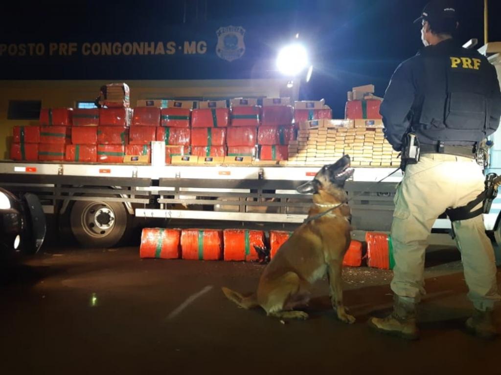 O Grupo de Operações com Cães da PRF com sede em Contagem foi acionado e iniciou uma busca minuciosa. Os cães apontaram a existência de drogas no veículo, o que foi confirmado com a identificação de um compartimento oculto sob o piso da carroceria.