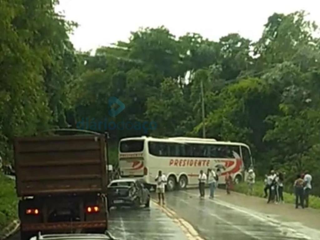 O ônibus da Presidente ficou atravessado na rodovia, mas nenhum passageiro se feriuA Polícia Rodoviária Federal (PRF) registrou, por volta das 11h desta terça-feira (22), um acidente na BR-381, próximo ao rio Una, no município de São Gonçalo do Rio Abaixo. Um Renault Logan e um ônibus da empresa Presidente foram os veículos envolvidos no acidente.