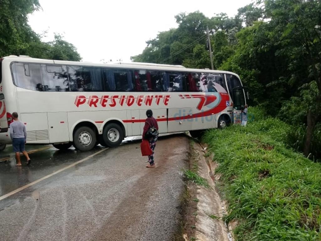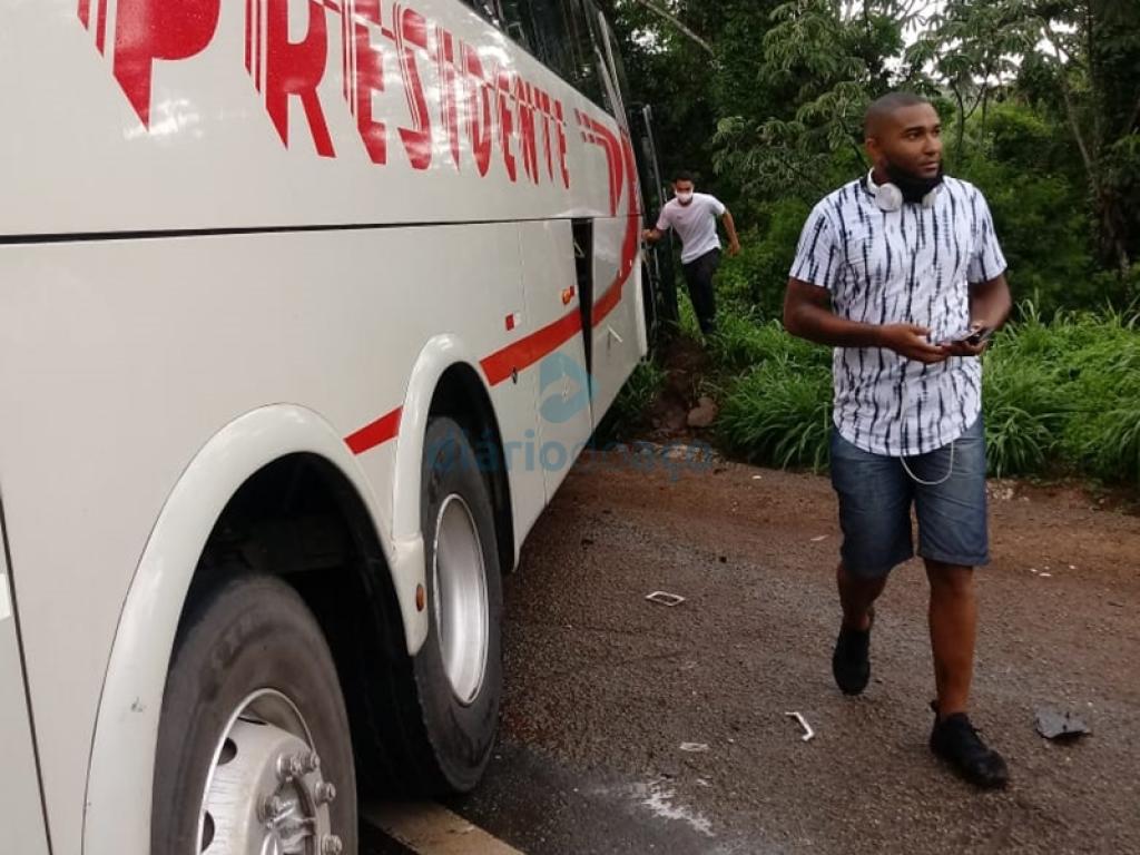 O ônibus da Presidente ficou atravessado na rodovia, mas nenhum passageiro se feriu