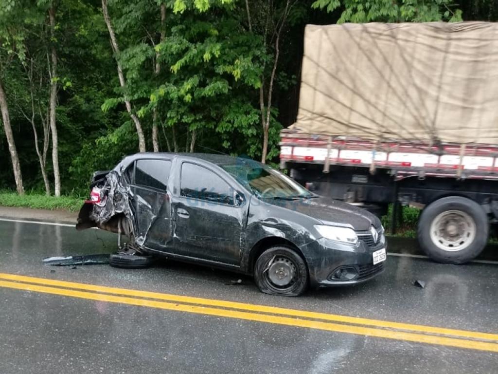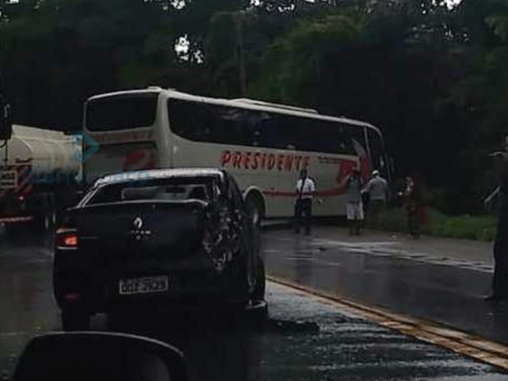 Ainda de acordo com a Polícia Rodoviária, nenhuma pessoa se feriu no acidente e foram registrados apenas danos materiais nos veículos envolvidos na colisão. O trânsito no trecho ficou lento até a retirada do carro e do ônibus acidentados.