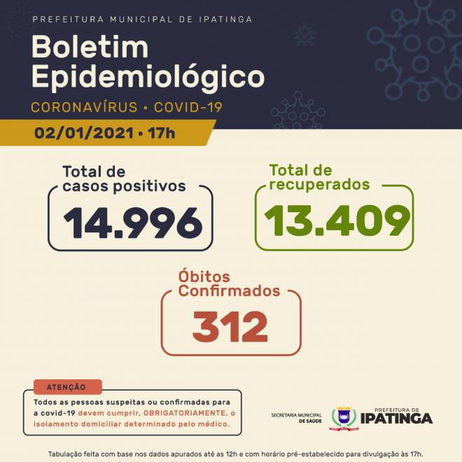 Ipatinga registra ainda 14.996 casos positivos da covid-19, dos quais, 13.409 são considerados recuperados.