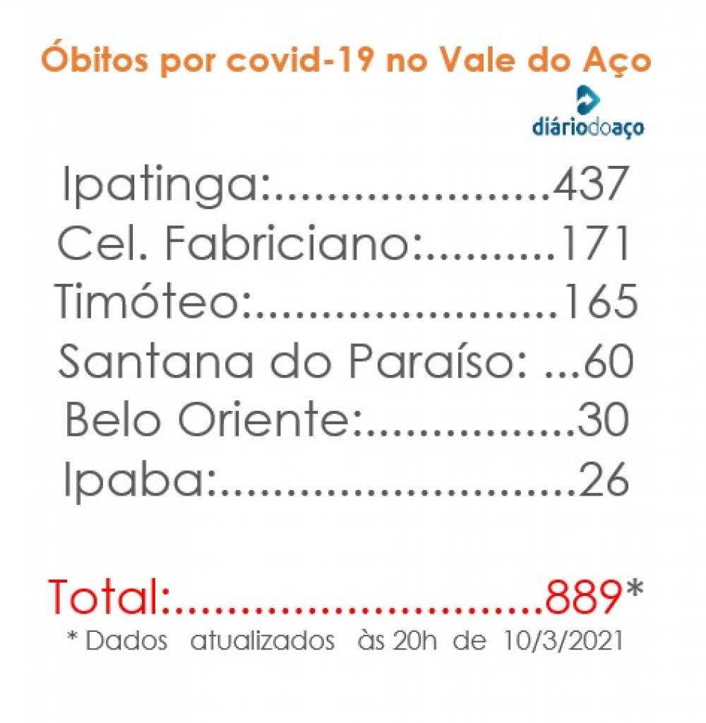 Cinco cidades do Vale do Aço registraram novos óbitos em decorrência das complicações causadas pela covid-19 nesta quarta-feira (10). No total, dez pessoas morreram por complicações com a doença causada pelo coronavirus Sars Cov 2 em Timóteo, Ipatinga, Coronel Fabriciano, Santana do Paraiso e Belo Oriente.