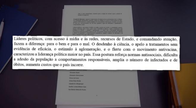 Mesmo sem citar o presidente Jair Bolsonaro uma única vez, ficam explícitas as críticas ao governo. A começar pela crítica de que claramente houve falta de prioridade na vacinação. Na carta esclarece que o atraso na vacinação irá custar em termos de produto ou renda não gerada nada menos do que estimados R$ 131,4 bilhões em 2021, supondo uma recuperação retardatária em 2 trimestres”.