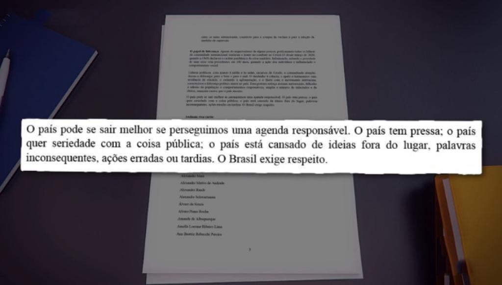 O documento é assinado pelos ex-ministros da Fazenda, Pedro Malan, Maílson da Nóbrega, Marcílio Marques Moreira e Ruben Ricúpero, e os ex-presidentes do Banco Central Armínio Fraga, Affonso Celso Pastore, Gustavo Loyola, Ilan Goldfajn e Pérsio Arida. Além dos economistas, há também centenas de empresários ligados ao mercado financeiro, como o conselheiro do Itaú Unibanco, Pedro Moreira Salles, e o presidente do Credit Suisse, José Olympio Pereira.