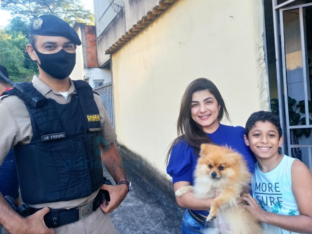 O cãozinho já de volta aos seu lar com seus responsáveis no bairro Ideal, em IpatingaPoliciais militares localizaram na tarde desta quinta-feira (24) a dona de um cãozinho da raça Lulu da Pomerânia”. O pequeno animal foi encontrado por uma guarnição da PM quando ele estava perdido na rua, na quarta-feira (23), no bairro Ideal, em Ipatinga.