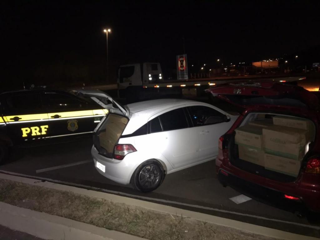 Ao parar veículo que transitava com luzes de lanterna apagadas, policiais rodoviários descobriram caixas com mercadoria furtada