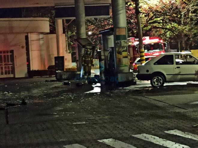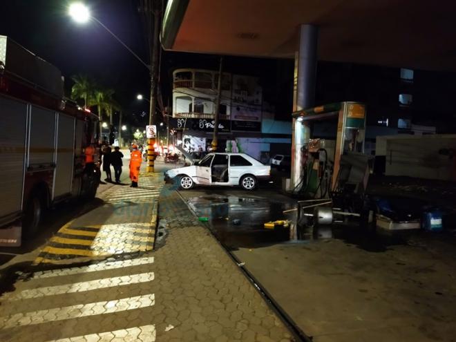 Motorista embriagado atinge bombas de combustíveis em posto no Jardim Panorama, em Ipatinga
