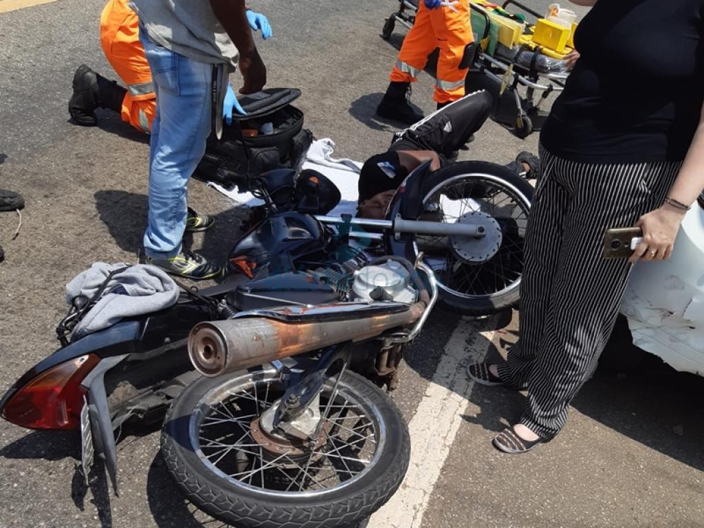 O motociclista ferido foi atendido por uma equipe do Corpo de Bombeiros