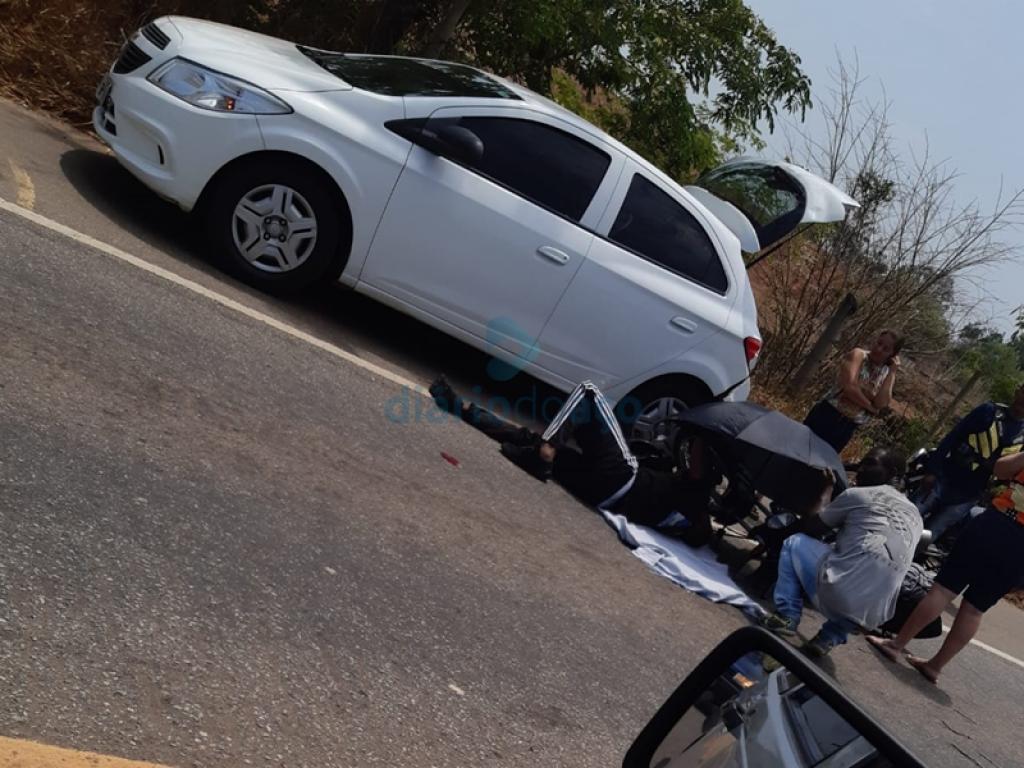 Motociclista fica ferido ao bater na traseira de carro na BR-458