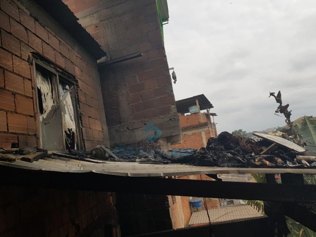As chamas atingiram parte desta residência no aglomerado da rua Pouso Alegre