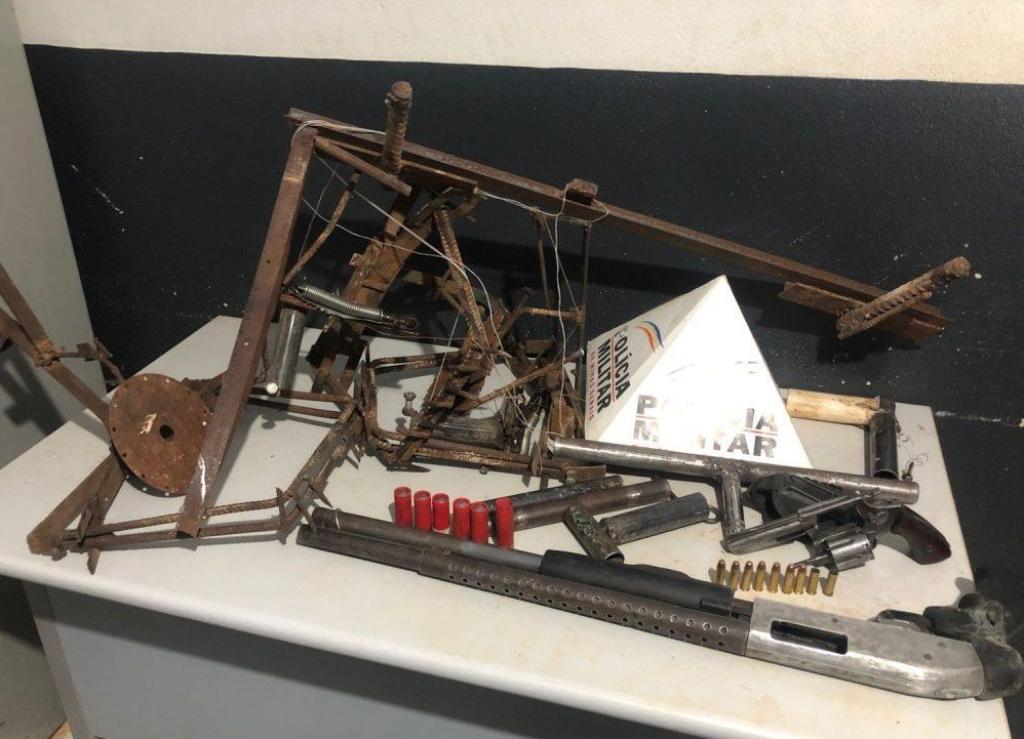 Alertados por vizinhos, os policiais militares tiveram que usar escudos especiais para evitar que fossem atingidos. Foram encontradas duas armadilhas com capacidade para disparar munição calibre 12 e três convencionais, usadas tradicionalmente para capturar grandes animais.