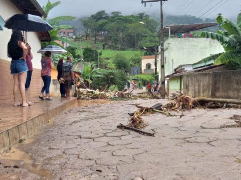 Depois da passagem da enxurrada, ruas na parte baixa de Dionísio ficaram intransitáveis