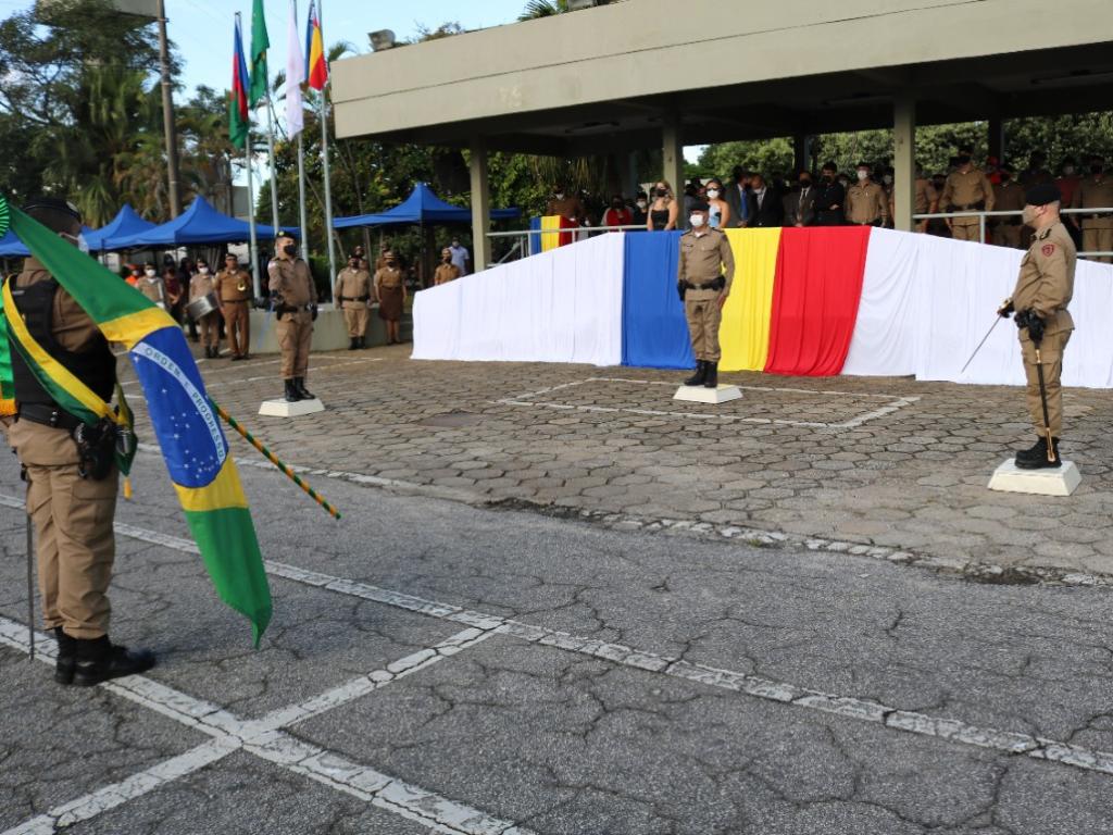 Ao fim do evento, os três coronéis cumprimentaram a tropa presente, apertando a mão de cada um dos militares.