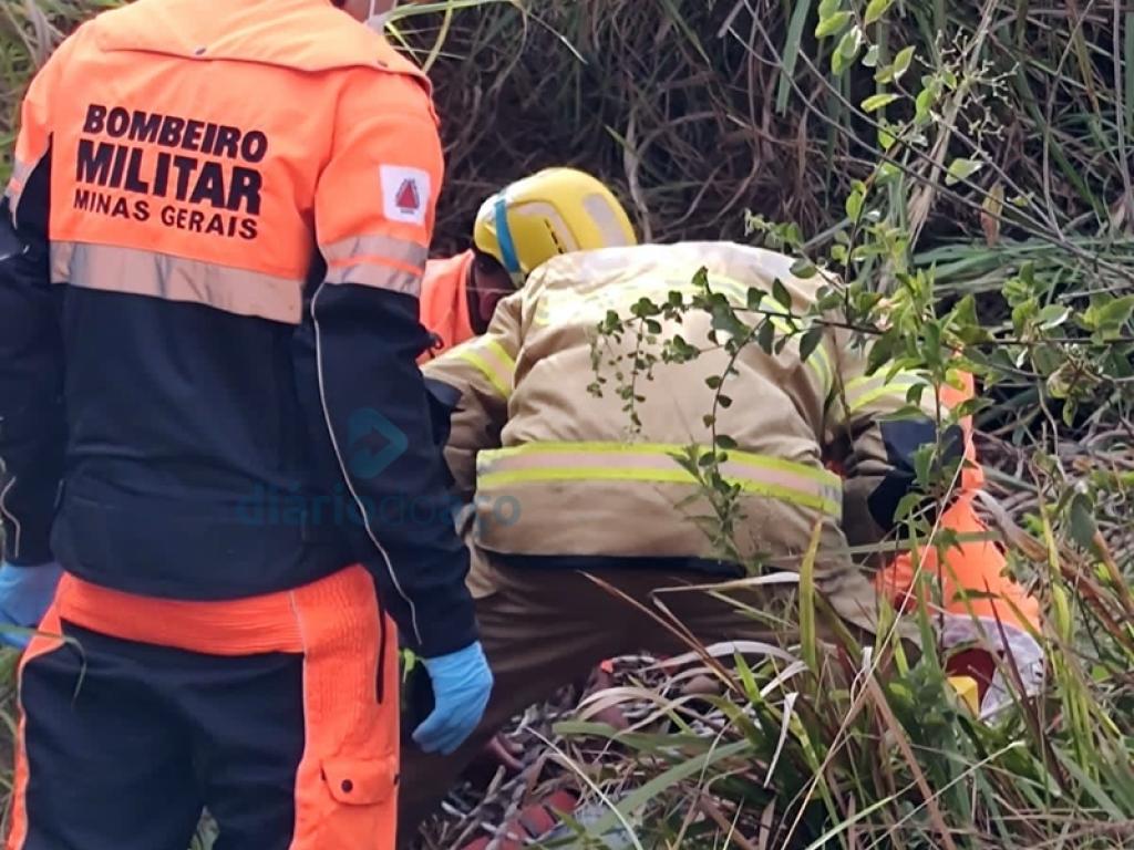 Bombeiros resgatam vítima de acidente na BR-458, em Ipaba