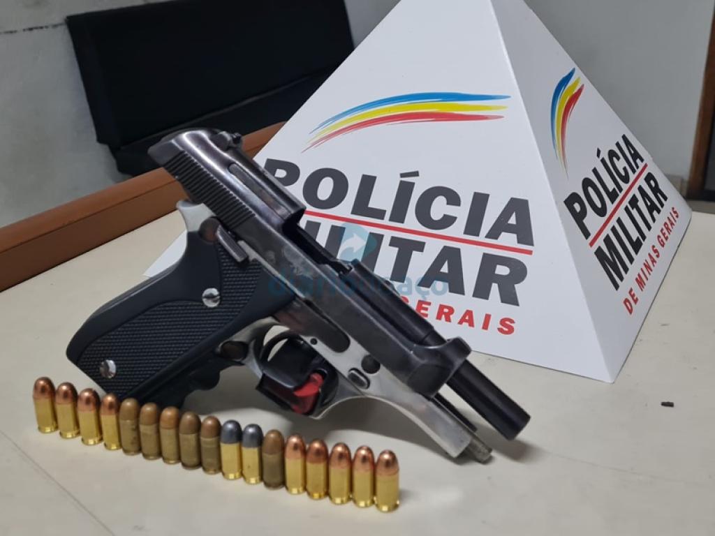 A pistola de calibre 380 estava municiada com 17 cartuchos ao ser apreendida pelos PMs