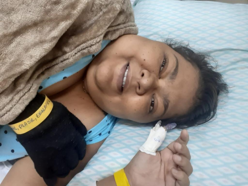 Adriana precisou ser internada recentemente devido ao entupimento de uma veia no braço; ainda faltam cerca de R$ 4 mil para fazer a cirurgia ocular