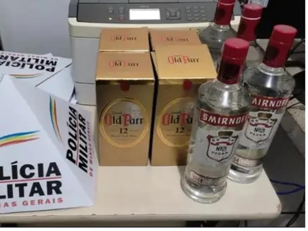 No comércio da mãe de um dos falsificadores foram encontradas quatro garrafas cheias de whisky” da marca Old Parr 12, três garrafas cheias de vodka” Smirnoff e uma já vazia. Parte do material foi levada pela perícia, enquanto o restante ficou na residência, que foi lacrada pela Polícia Militar.