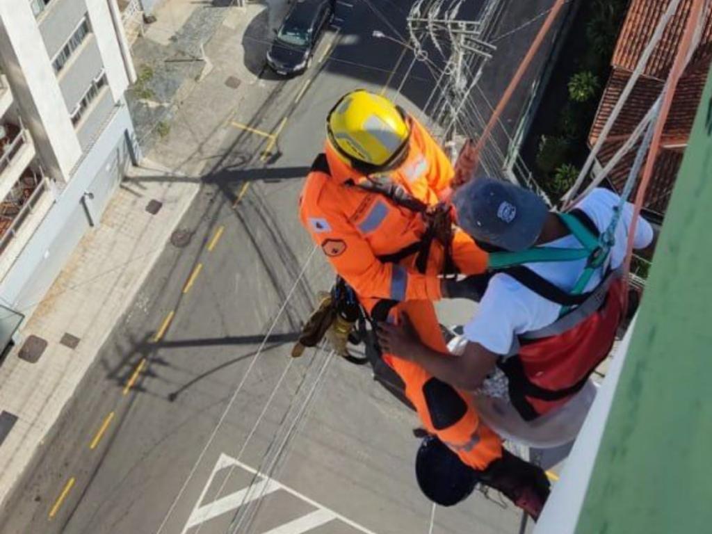 Pintor é resgatado do alto de prédio após equipamento se romper