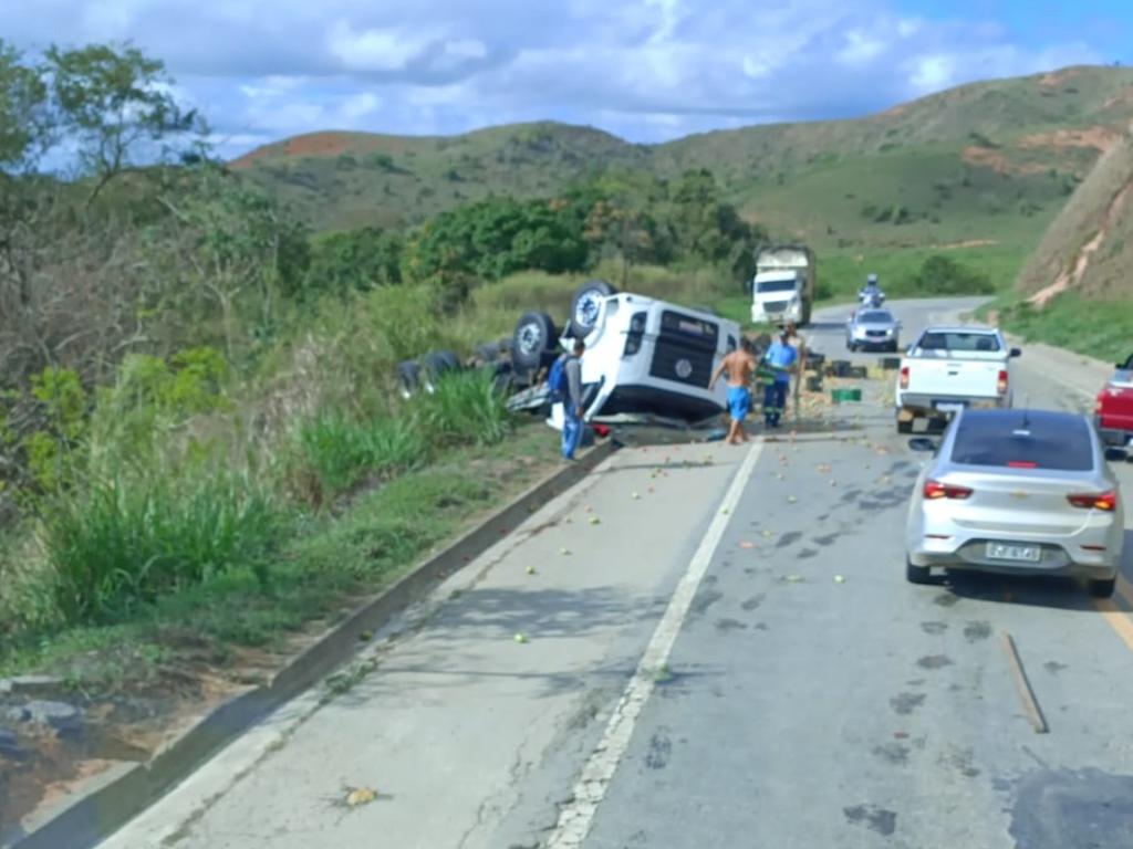 Caminhão carregado de tomates tomba na BR-381, próximo ao Naque