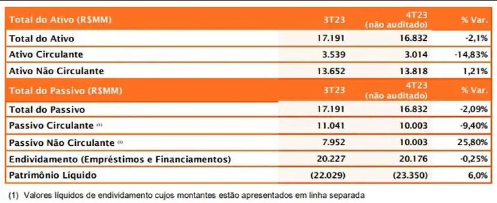 As informações financeiras aqui fornecidas são preliminares e não auditadas, estando assim sujeitas a possíveis ajustes. A companhia aconselha os investidores a exercerem cautela e a não se basearem exclusivamente nas informações acima para tomar decisões de investimento”, alerta a Gol, cujo patrimônio líquido negativo chegou a R$ 23,35 bilhões. A divulgação dos resultados derrubou o valor das ações da empresa na Bolsa. Após chegar a 12,5%, o prejuízo diminuiu, chegando a 11,3% por volta das 13h15.