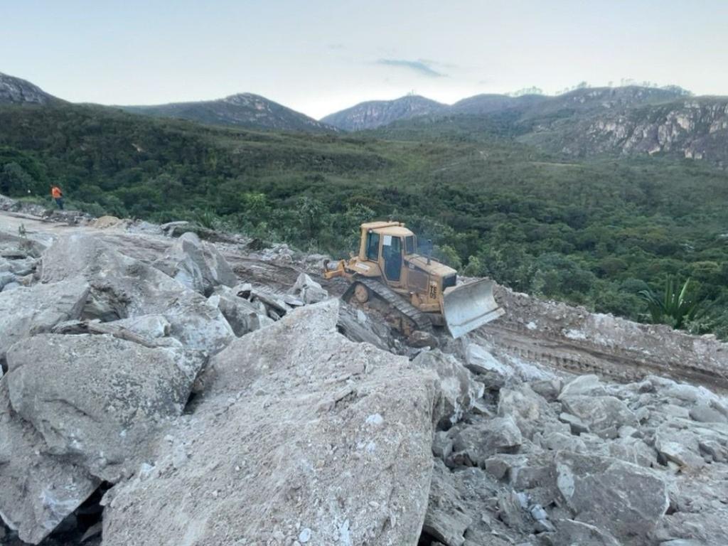 O tráfego será completamente interrompido nos dois sentidos da via para a execução do serviço de detonação de rocha, previsto nas obras de pavimentação da rodovia que estão em andamento.