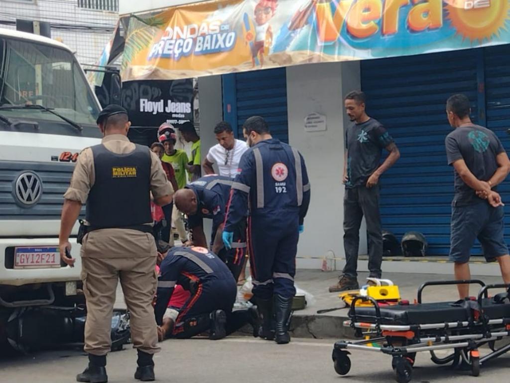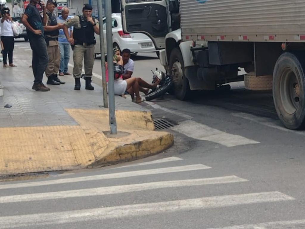 Jovem fica ferida em acidente entre moto e caminhão no Centro de Ipatinga