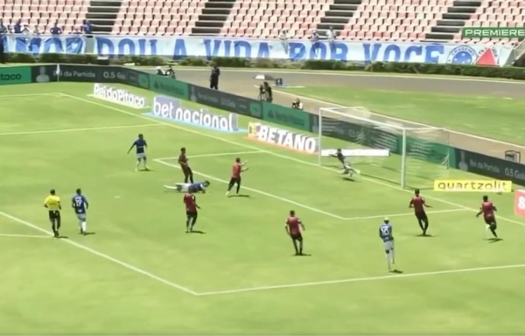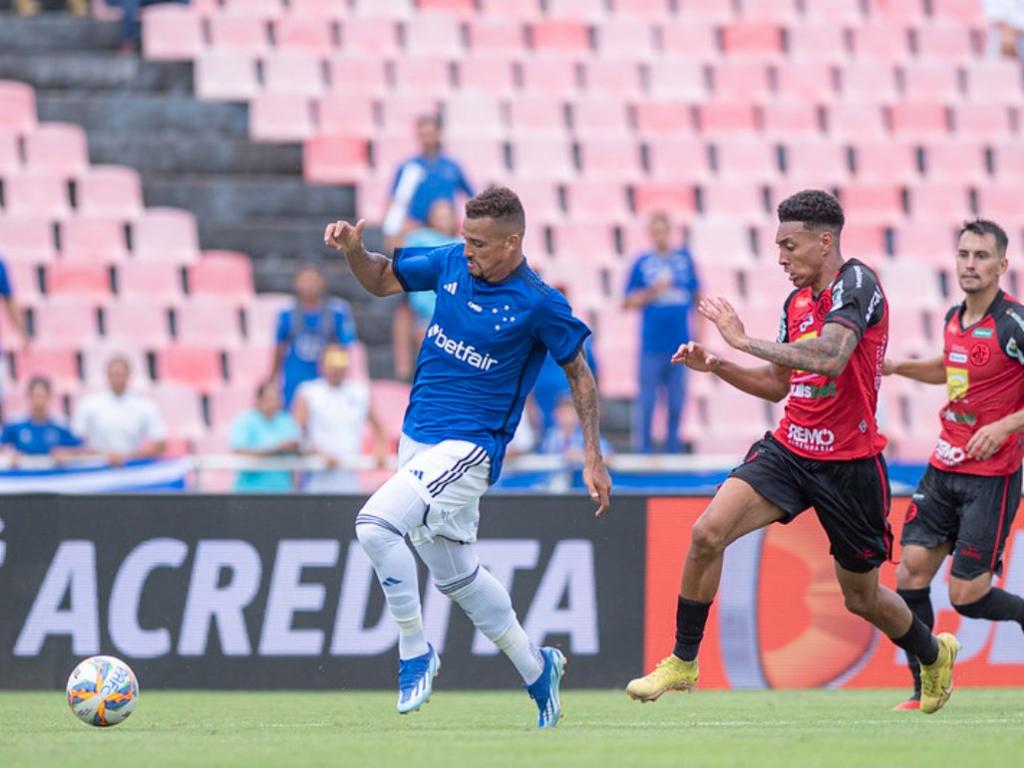 Depois, o próprio defensor arrancou do campo de defesa cruzeirense e, na linha de fundo da área do Pouso Alegre, tocou para o meio. Matheus Pereira desperdiçou novamente, de frente para goleiro adversário.