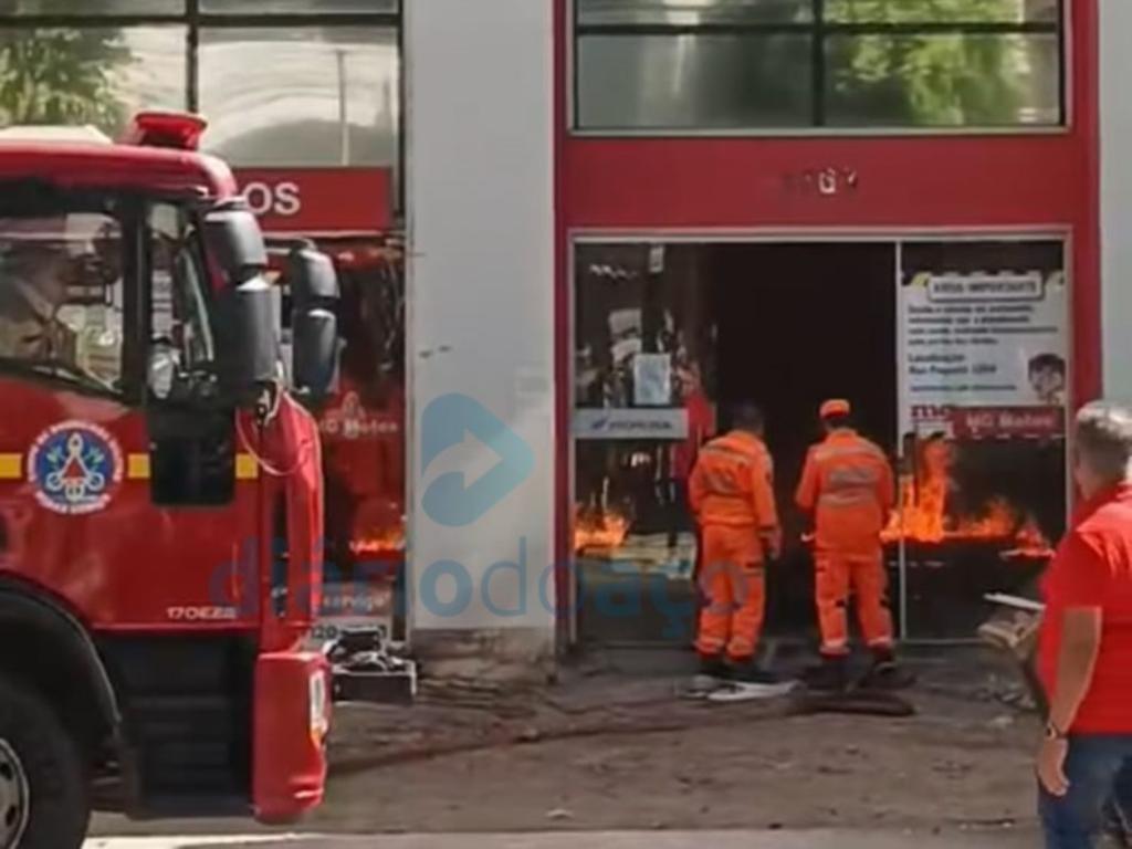 Bombeiros acionados para debelar incêndio em concessionária de motos em Fabriciano
