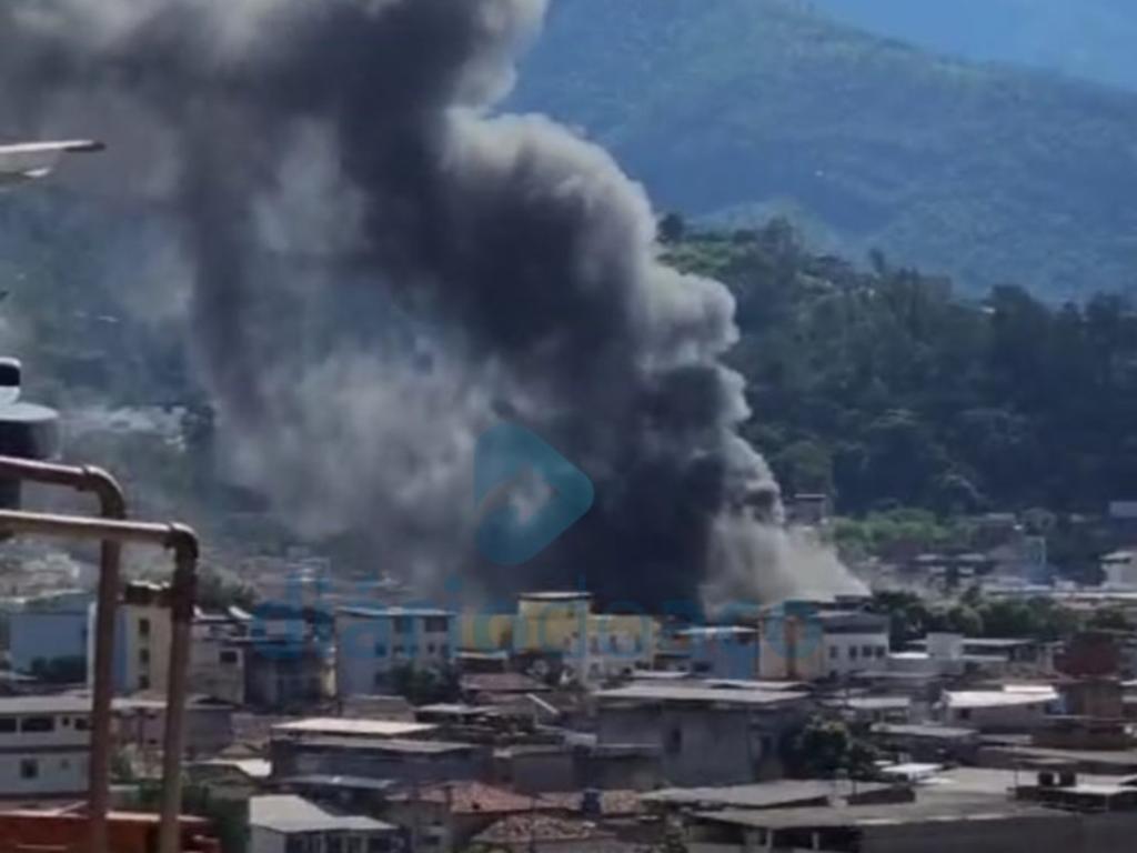 As chamas se espalharam na filial de uma concessionária de motocicletas. Já no começo da tarde, a fumaça podia ser avistada em diversos bairros da cidade.