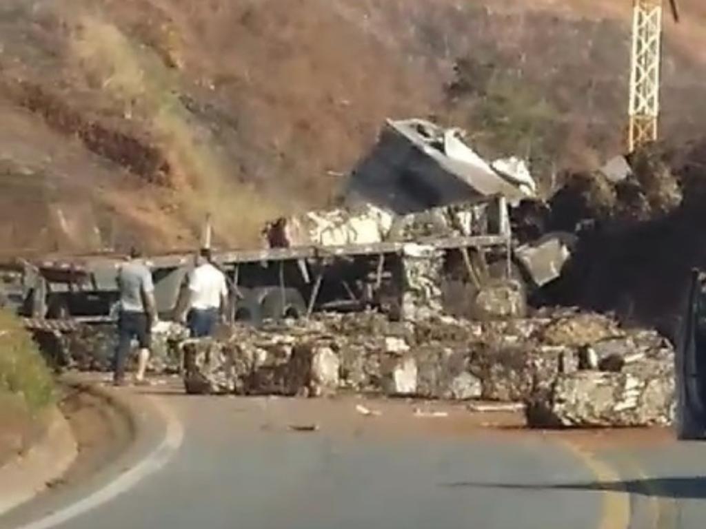 Acidente envolvendo um cavalo mecânico que puxava o semi-reboque carregado de materiais recicláveis prensados interdita a MG-120, entre Nova Era e Itabira, na manhã desta terça-feira (6). pic.twitter.com/qCiDj1aBZk