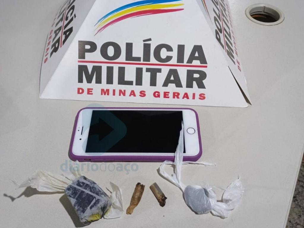 Os policiais encontraram duas pontas de cigarro de maconha e uma porção de maconha em embalagem de um maço de cigarros.