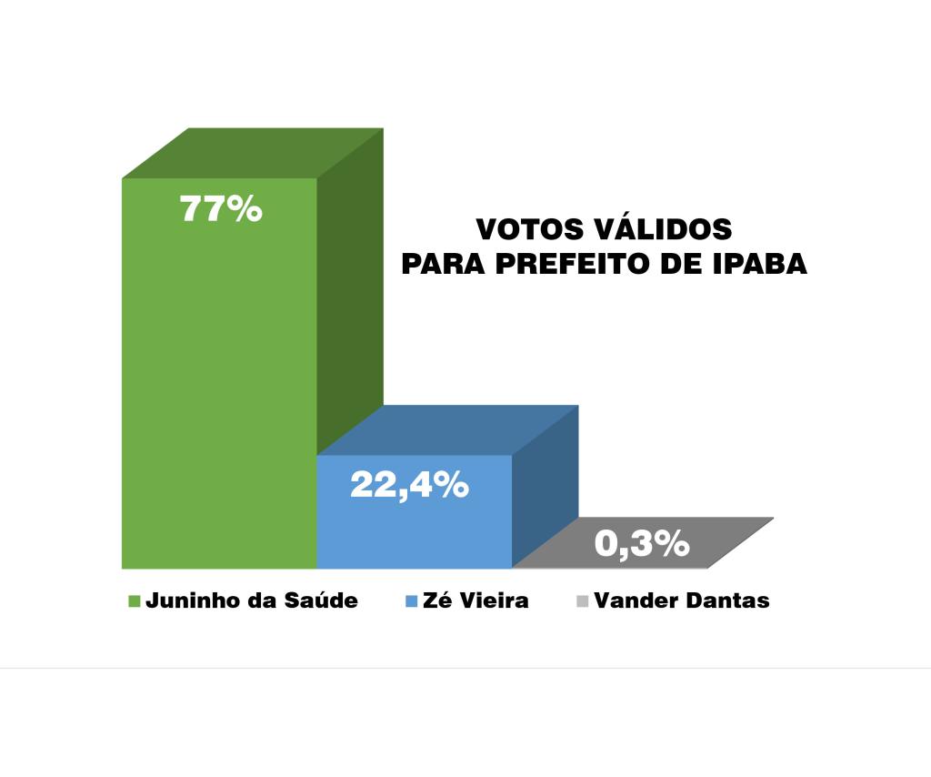 Levando-se em conta os votos válidos, em que são desconsiderados os votos brancos e nulos, o candidato Juninho da Saúde aparece com uma vantagem ainda maior. Conforme a pesquisa, neste caso, Juninho da Saúde tem 77% dos votos válidos, Zé Vieira tem 22,4% e Vander Dantas 0,6%.