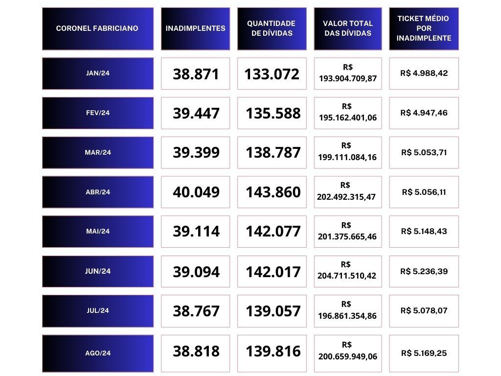 Coronel Fabriciano, com 38.818 munícipes com o nome sujo em agosto, foi a única cidade da região que contabilizou um aumento moderado na inadimplência. Em julho, a cidade teve 38.767 negativados.