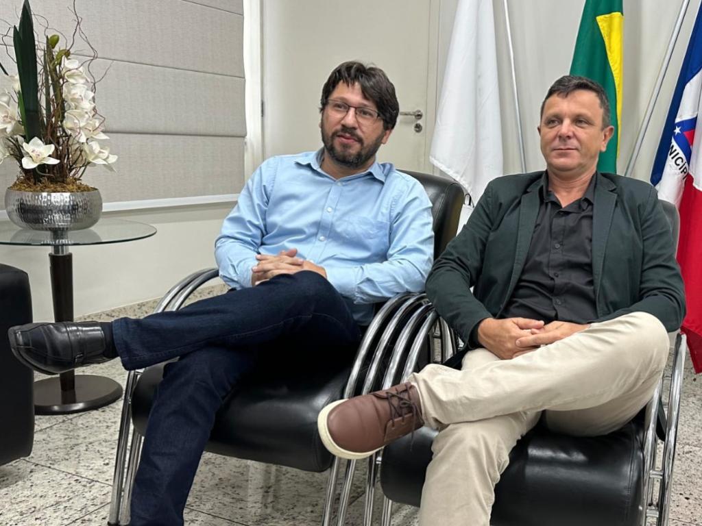 Prefeito de Timóteo, Douglas Willkys, recebe o prefeito eleito, Vitor Prado