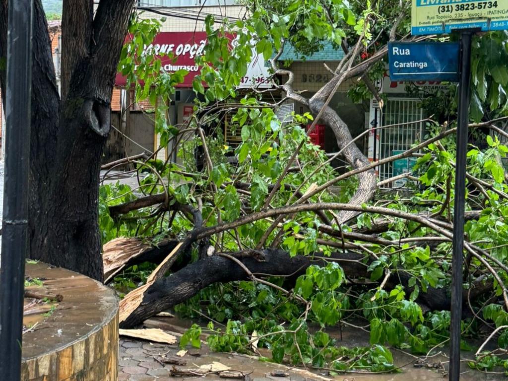 Árvore cai e atinge rede elétrica e a avenida Acesita no Centro Sul em Timóteo. Veja abaixo o vídeo 👇 pic.twitter.com/m6dvflIgmd
