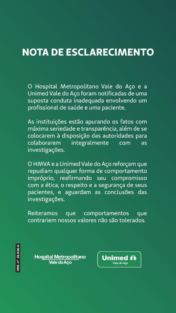 Em nota conjunta de esclarecimento, tanto o hospital Metropolitano quanto a Unimed afirmaram que foram notificados sobre a denúncia de possível conduta inadequada envolvendo um pediatra que atende na instituição hospitalar. As empresas asseguram que tratam o caso com "máxima seriedade e transparência" e que colaboram integralmente com as investigações conduzidas pelas autoridades. Abaixo está a íntegra da nota.