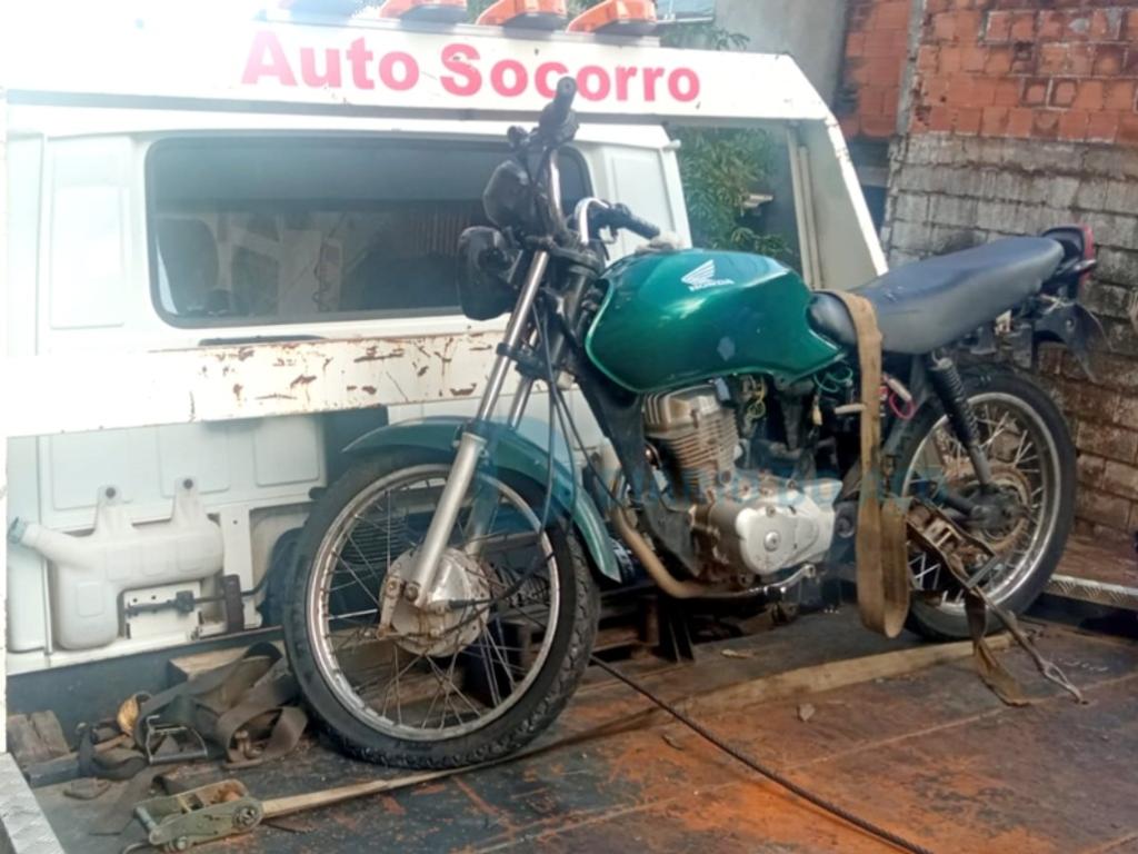 A motocicleta apreendida na casa do adolescente infrator no bairro Vila Celeste