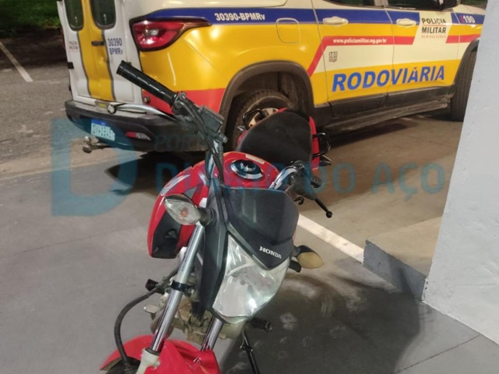 A moto recuperada pela Polícia Militar Rodoviária no início da noite de segunda-feiraO Diário do Aço acompanhou o encerramento da ocorrência da PM Rodoviária (PRv). Os militares viram o condutor da moto calçado com chinelos e a o veículo sem os retrovisores, além de trafegar sem sinalizar as mudanças de faixa e com a viseira do capacete aberta. Na abordagem se descobriu que o motociclista era inabilitado.