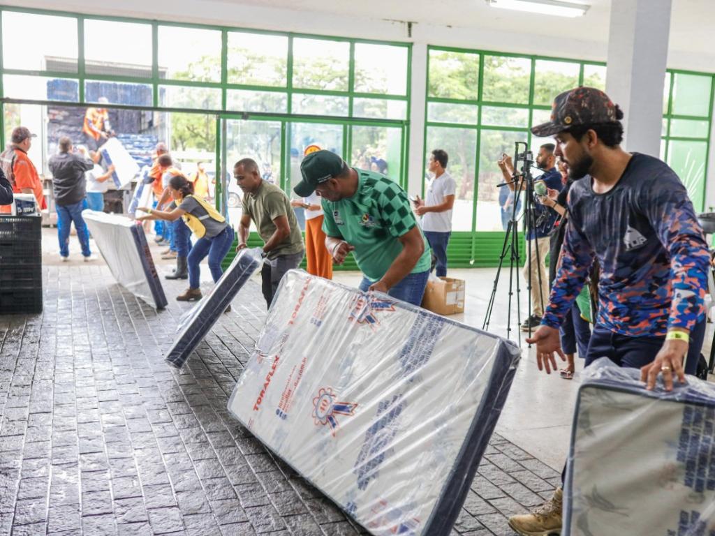 Na tarde desta segunda-feira, dois caminhões da Defesa Civil Estadual descarregaram no Ipatingão colchões, materiais de limpeza e higiene pessoal e cestas de alimentos para serem distribuídos. No local também são recebidas doações da comunidade, e os organizadores alertam que vestimentas não são mais necessárias, já tendo excedido o volume pretendido.