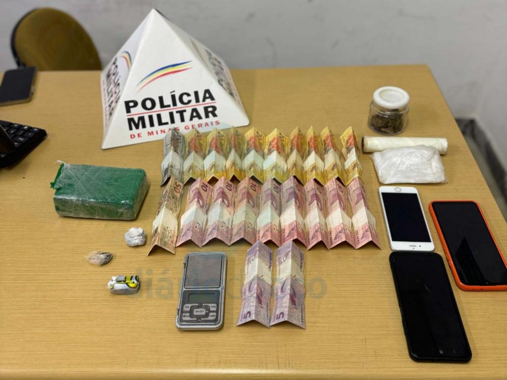 No lote vizinho, para onde os indivíduos arremessaram os objetos, os militares localizaram uma barra de maconha, uma balança de precisão, um tablete da mesma substância, R$ 20, diversas sacolinhas plásticas e uma chave de motocicleta.