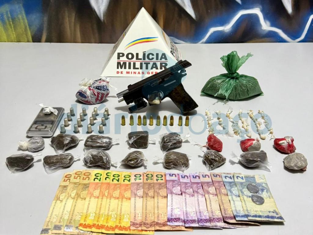 Na lista de materiais apreendidos estão: uma pistola Ceska Zbrojovka (República Tcheca) calibre 9 mm, 10 cartuchos intactos do mesmo calibre, um carregador alongado, 66 pedras de crack, 16 pinos de cocaína, 17 porções de maconha, R$ 290 em dinheiro, entre outros insumos. Uma adolescente foi apreendida no local onde o material estava guardado.