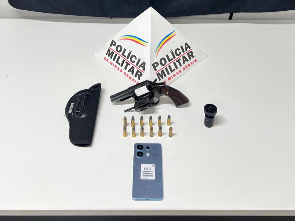Durante a abordagem, os policiais localizaram um revólver calibre .38 com numeração raspada e seis cartuchos no tambor. No porta-luvas do carro, também foi encontrado um jet loader com mais seis munições do mesmo calibre.
