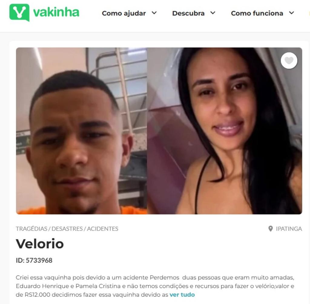 Na manhã desta quinta-feira familiares organizaram uma Vakinha online para ajudar a custear o velório dos dois jovens. Quem quiser fazer doaçoes basta acessar o link: Vakinha Velório. A meta é arrecadar R$ 12 mil.Reprodução